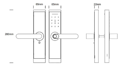 280mm*65mm*22mm - Door Thickness: 30mm ~ 75mm